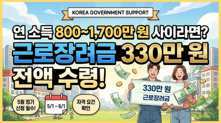 #근로장려금 #2026근로장려금 #맞벌이근로장려금 #근로장려금330만원 #근로장려금소득요건 #근로장려금재산기준 #홈택스 #손택스 #정부지원금 #5월정기신청